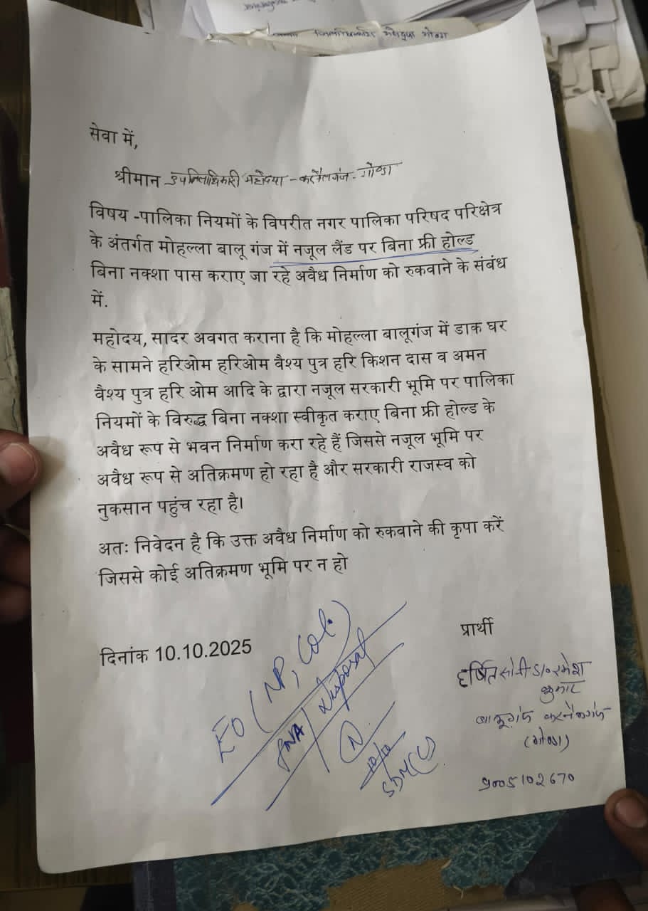 शिकायत के बाद प्रशासन ने लेखपाल से स्थलीय जांच कराई, जिसमें यह तथ्य सामने आया कि बालूगंज क्षेत्र में नजूल भूमि पर बिना नक्शा पास कराए निर्माण कार्य कराया जा रहा है।
