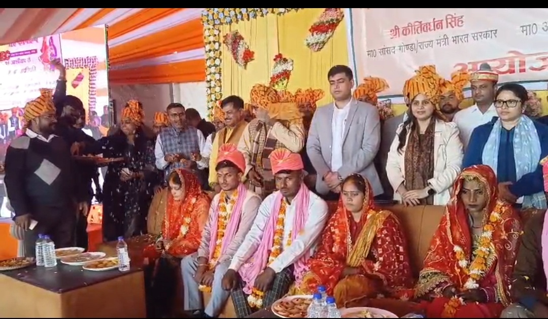 गोण्डा, 11 दिसम्बर 2025।मुख्यमंत्री सामूहिक विवाह योजना के अंतर्गत गुरुवार को मनकापुर स्थित आरपी आदर्श इंटर कॉलेज में भव्य सामूहिक विवाह समारोह आयोजित किया गया। कार्यक्रम पूरी सूचनात्मकता और सादगीपूर्ण ढंग से सम्पन्न हुआ। इस अवसर पर जनपद के विभिन्न विकासखण्डों एवं नगर निकाय क्षेत्रों से कुल 285 जोड़ों ने पंजीकरण कराया, जिनमें से 231 जोड़ों का विवाह परंपरागत रीति-रिवाजों के साथ सम्पन्न कराया गया। इनमें से 28 निकाह इस्लामिक पद्धति से मौलवी साहिबे आलम द्वारा संपन्न कराए गए।