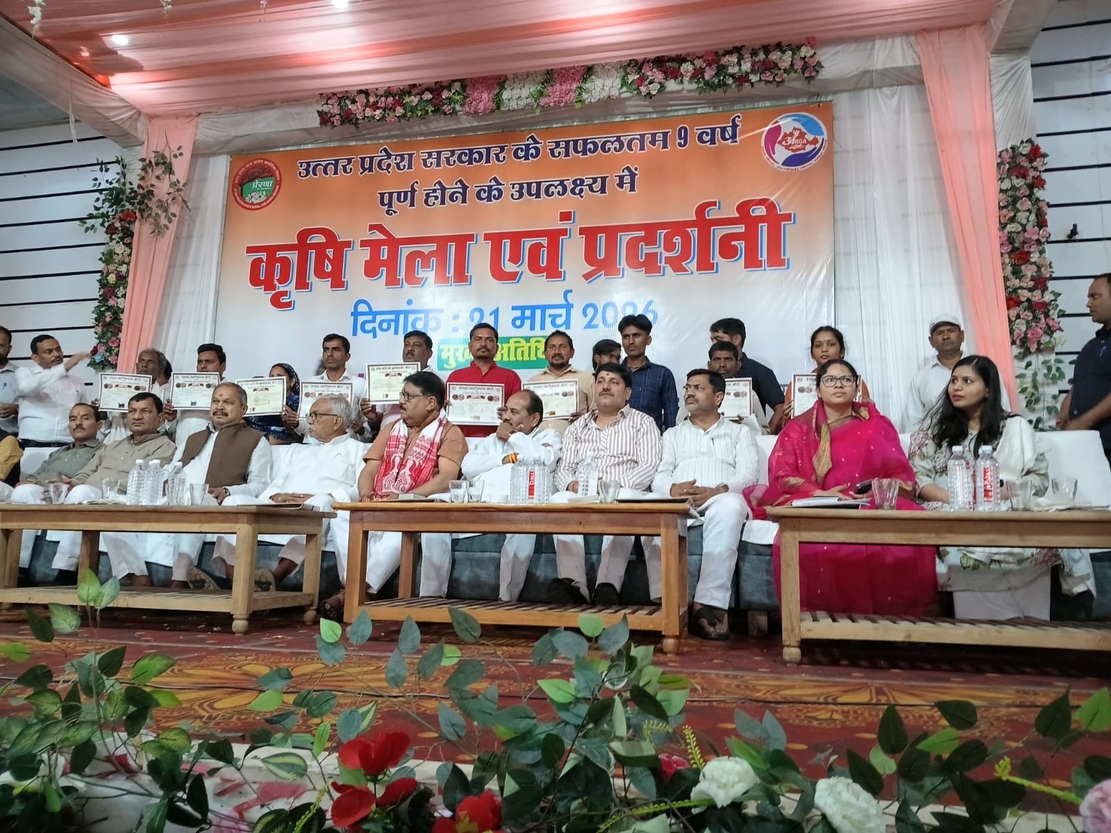 गोण्डा, 21 मार्च 2026।उत्तर प्रदेश सरकार के नौ वर्ष पूर्ण होने के उपलक्ष्य में जनपद गोंडा के वेंकटाचार्य क्लब परिसर में भव्य कृषि मेला एवं प्रदर्शनी का आयोजन किया गया। कार्यक्रम का उद्घाटन मा० प्रभारी मंत्री दारा सिंह चौहान द्वारा किया गया। इस अवसर पर जनप्रतिनिधियों, प्रशासनिक अधिकारियों, प्रगतिशील किसानों एवं ग्रामीणों की बड़ी संख्या में सहभागिता रही।