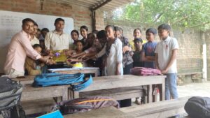 तहसील तरबगंज के बाढ़ प्रभावित ग्राम बहादुरपुर में प्रशासन ने बाँटी राहत सामग्री